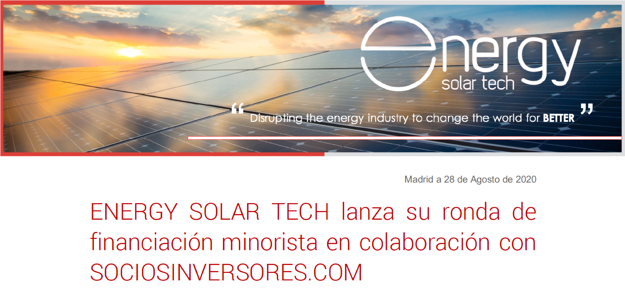 Coinciding with the public retail financing round of Energy Solar Tech, we have prepared the following press dossier with the main relevant details of our activity.